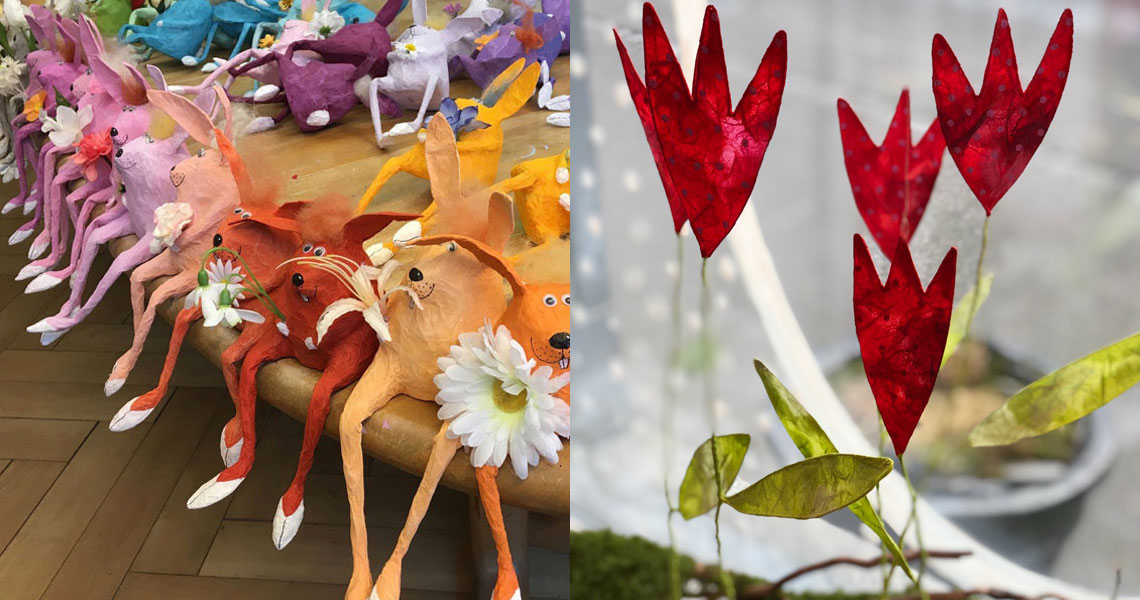 Ich liebe es mit einfachen Materialien wie Zeitung, Draht, Styroporteilen, Kleister und schönen Papieren meiner Fantasie Gestalt zu geben.