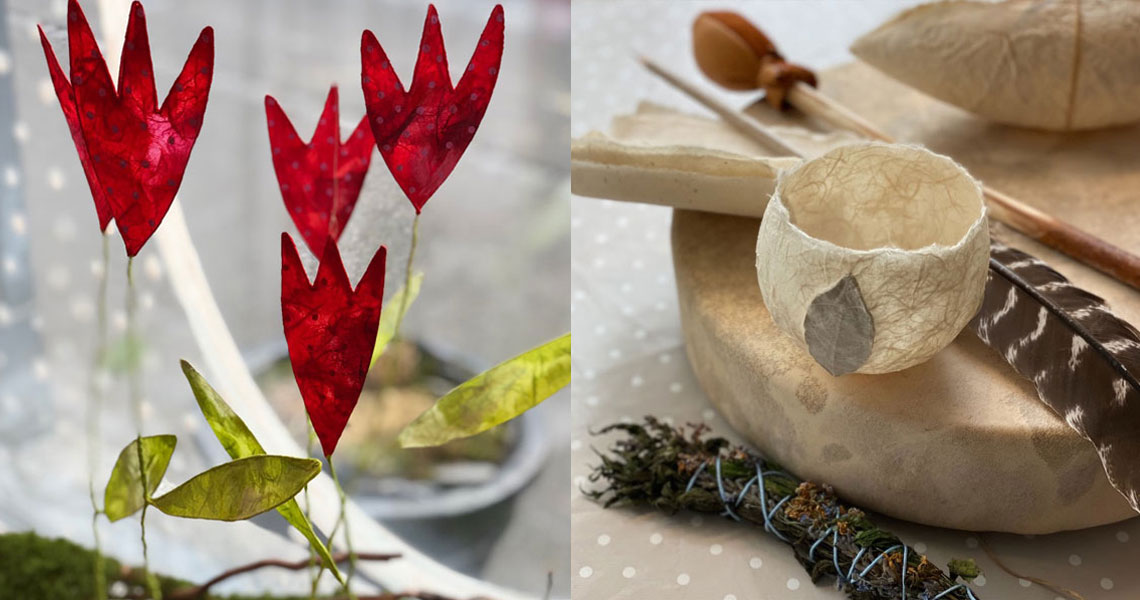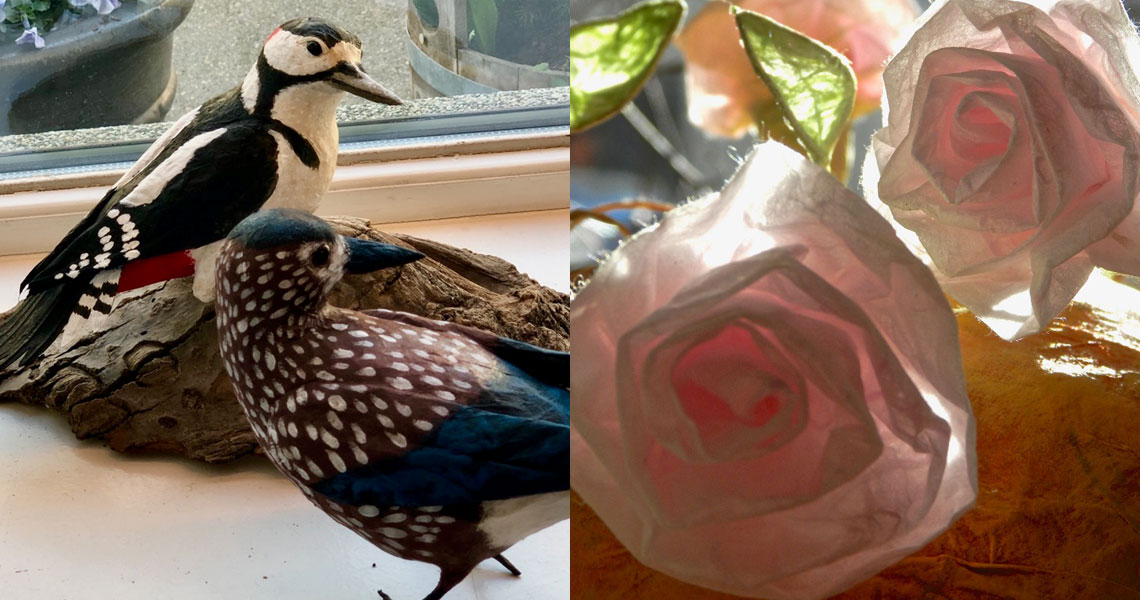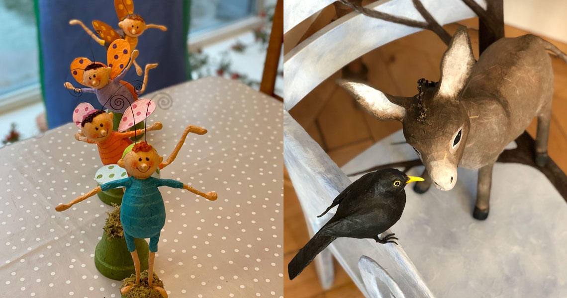 Ich liebe es mit einfachen Materialien wie Zeitung, Draht, Naturmaterialien, Kleister und schönen Papieren meiner Fantasie Gestalt zu geben.